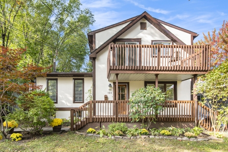 Charming and quirky, in a magical neighbourhood on a quiet cul de sac. Built in early 1900s and facing on to St Laurent, the original farmhouse was renovated and added o to over the years. Large living space on the main floor provides great family space and possibilities for those who work at home: there are so many options to lay out the spaces. The second floor boasts 2 bedrooms and a lovely bathroom with soaker tub and separate shower. The high ceiling in the lower level in the addition makes this bright space perfect for addition living areas such as guest room, TV room, gym or even work at home space. You'll be able to move right in and start to enjoy. There have been many upgrades over the years and recently. This beautiful large lot is private with a big rear deck and lots of room left to garden in or play in. Walk to the new Farm Store and community hub on Gaspe and take advantage of the great bike and cross-country ski network practically at your doorstep. Inspection on file.